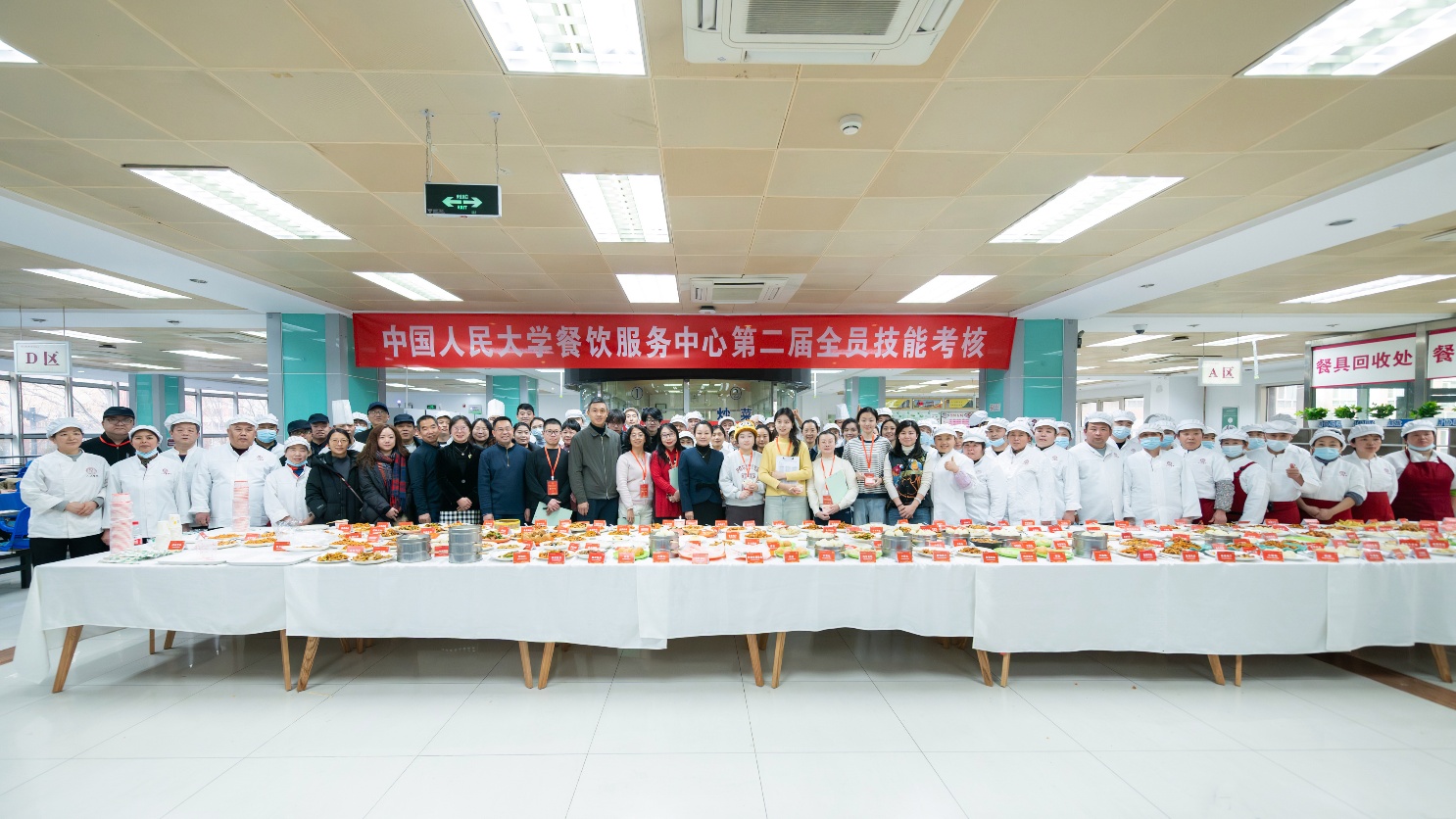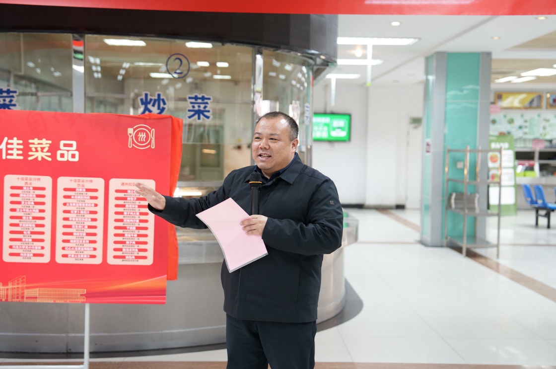 在启动仪式上,王小虎副校长为“十佳菜品”总榜揭幕,并作动员讲话。他首先代表学校向餐饮服务中心全体员工的辛勤付出与卓越贡献致以衷心感谢,并向获奖团队表示祝贺。王小虎副校长指出,“民以食为天”,学校餐饮工作关乎师生健康和校园稳定,是服务育人、环境育人的重要一环, “十佳菜品”的发布不仅是技艺的展示,更是“人大味道”与文化内涵的传承;全员技能考核则是锤炼队伍、提升专业化水平的关键举措。他期待餐饮团队以此次活动为新起点,筑牢安全根基,弘扬工匠精神,持续创新菜品,将餐饮服务切实融入学校“三全育人”格局,为学校事业发展提供更坚实、更温暖的保障。