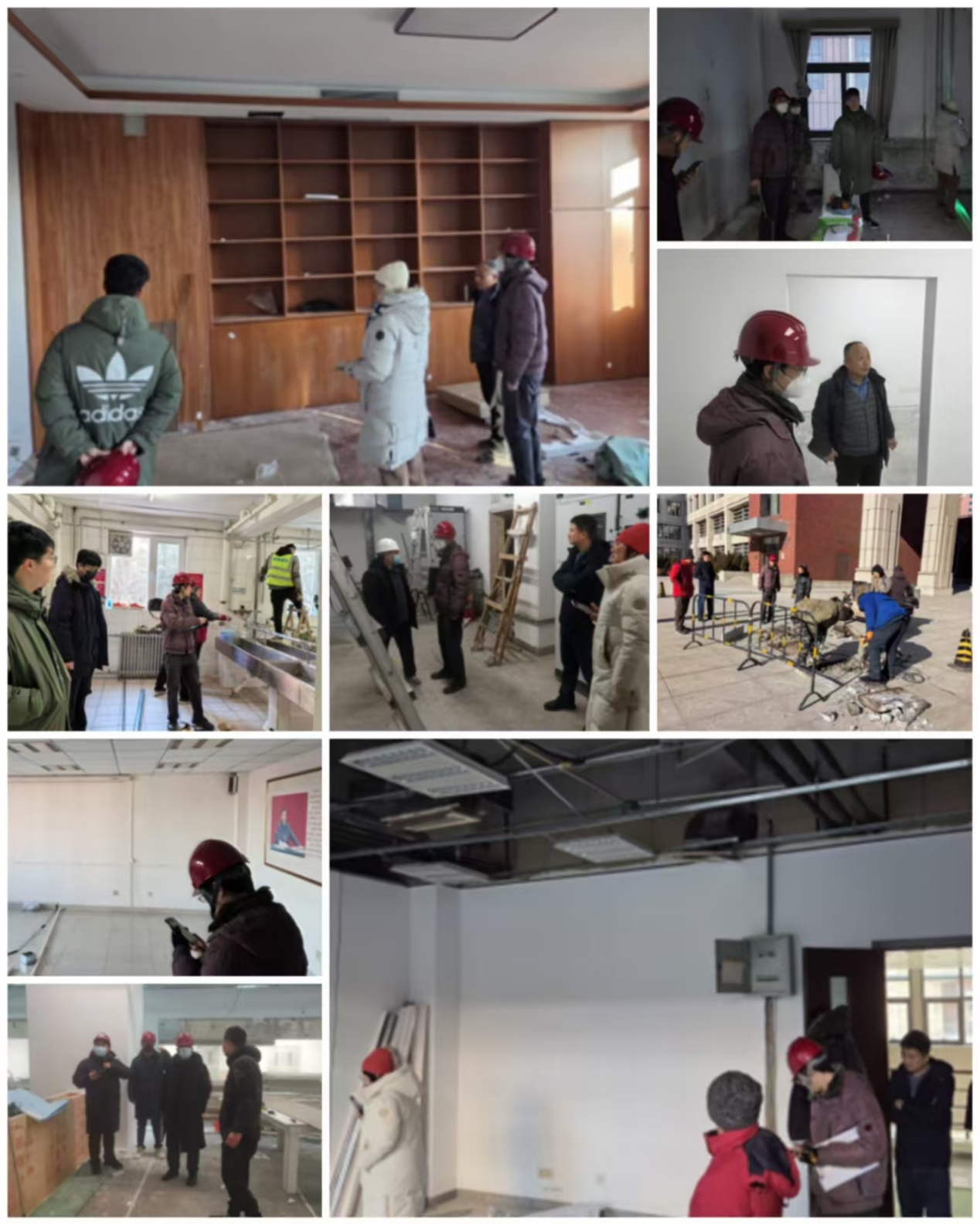 第一组聚焦各在建工地,重点排查施工现场安全防护设施配备、临时用电规范、人员操作流程合规性等情况,坚决杜绝违章作业行为。同时,进一步强化施工现场火灾防控措施,筑牢施工现场安全屏障。此次检查涵盖信息学院理工配楼106A改造项目、美育中心办公用房装修工程(二期)、饮水设备配套工程、国际文化交流中心变压器及配电柜更新增容项目、中关村校区地面石材及步道砖局部整修项目、通州校区西区食堂装修工程以及通州校区学生公寓浴室设施升级工程(一期)等多个在施项目。